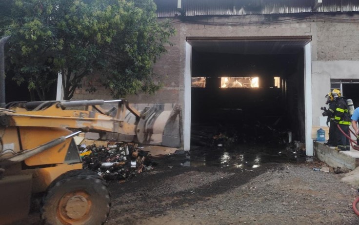 No local, foi constatado que o fogo estava em desenvolvimento completo no interior do barracão. A estrutura estava totalmente fechada e as chamas concentradas próximo ao portão de elevação de entrada.