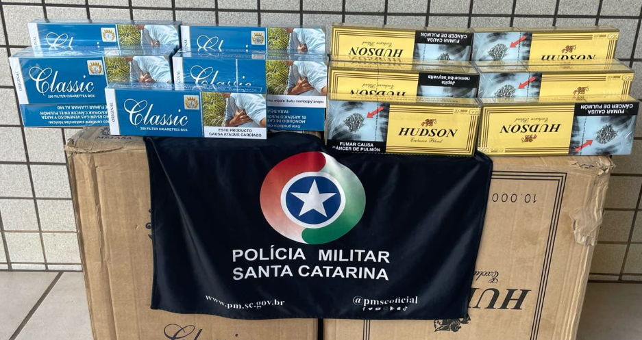No carro estavam um homem e uma mulher. Nada de irregular foi encontrado com eles, mas, ao revistar o veículo, os policiais localizaram quatro caixas de papelão com 2.000 carteiras de cigarros do Paraguai, avaliadas em R$ 10 mil.
