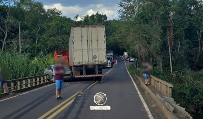 Uma colisão lateral entre uma carreta e um carro foi registrada na tarde deste domingo (23) na SC-161, entre Romelândia e Flor do Sertão. O acidente ocorreu por volta das 16h20, sobre a ponte do Rio Sargento.