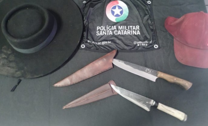 No local, a guarnição apurou informações onde testemunhas relataram que dois homens estavam tentando trocar facas por produtos, além de terem sido flagrados subtraindo outros itens. Os suspeitos, de 28 e 31 anos, foram conduzidos até a Delegacia de Polícia Civil para os procedimentos cabíveis.