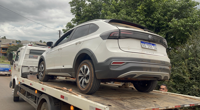 A ocorrência foi registrada na Rua Borges de Medeiros, no bairro Salete, em Dionísio Cerqueira. Durante uma abordagem de rotina em um bar, os policiais visualizaram um veículo com características alteradas, sem bancos e sem forro nas portas, estacionado em frente ao estabelecimento.