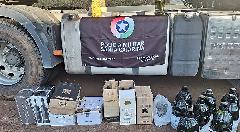 A Polícia Militar Rodoviária (PMRv) apreendeu pneus, caixas de vinho e litros de azeite durante uma fiscalização na tarde deste domingo, dia 30, na SC-163, em Iporã do Oeste, no Oeste catarinense.