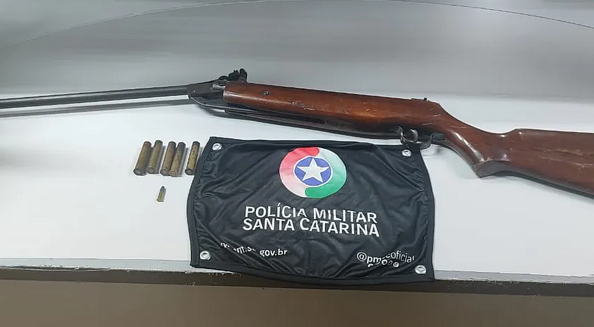 As guarnições da PM localizaram os suspeitos em casa. De acordo com a Polícia Militar, a esposa de um deles permitiu a entrada dos policiais, que encontraram cinco cápsulas de cartucheira e uma carabina de pressão adaptada para calibre .22, com uma munição intacta. Um dos homens assumiu ser o dono da arma e foi preso em flagrante. Ele foi levado à Delegacia de Polícia Civil de São Miguel do Oeste.