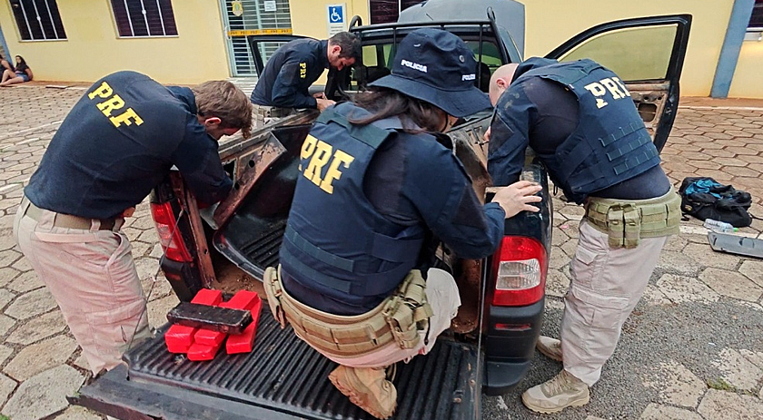 O veículo foi abordado na BR-282 devido a irregularidades, como uma lanterna traseira queimada e modificações na suspensão. Durante a inspeção inicial, os PRFs notaram forte odor de maconha e decidiram submeter a caminhonete ao scanner. O equipamento, que funciona como uma “visão de raio X”, permite observar a estrutura interna dos veículos, identificando fundos falsos e compartimentos adaptados.