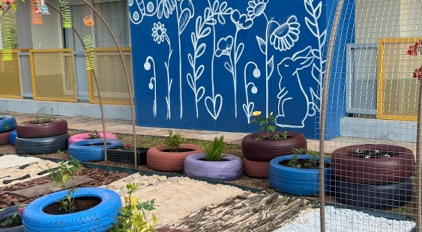 Além disso, a iniciativa promove a educação ambiental, ao estimular o contato com a natureza. Para isso, foi criada uma trilha com diversos materiais, que as crianças podem percorrer, e pneus doados foram utilizados para formar canteiros coloridos ao longo do trajeto. Neles, foram plantadas mudas de flores diversas, temperos, chás, suculentas e árvores frutíferas.
