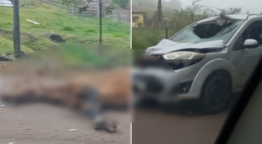 Animal morreu no local; vítima foi encaminhada ao Hospital Regional de São Miguel do Oeste com suspeita de fratura