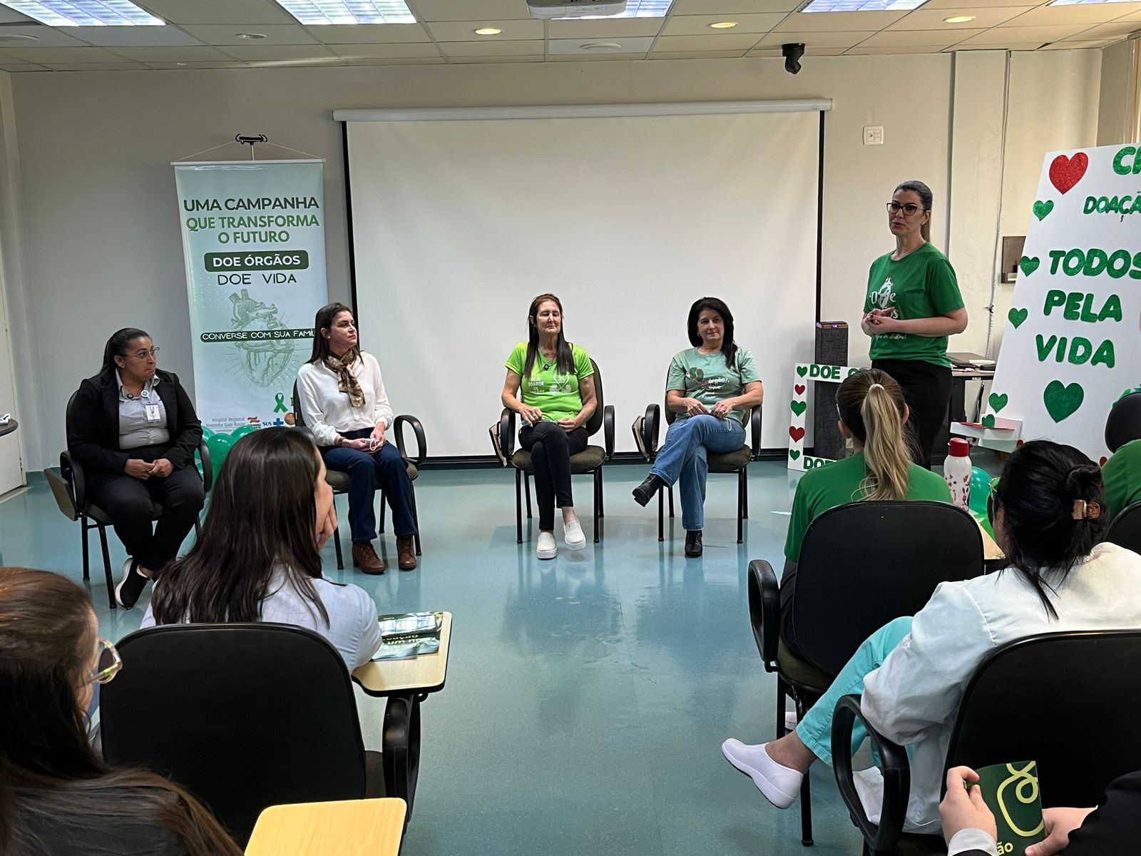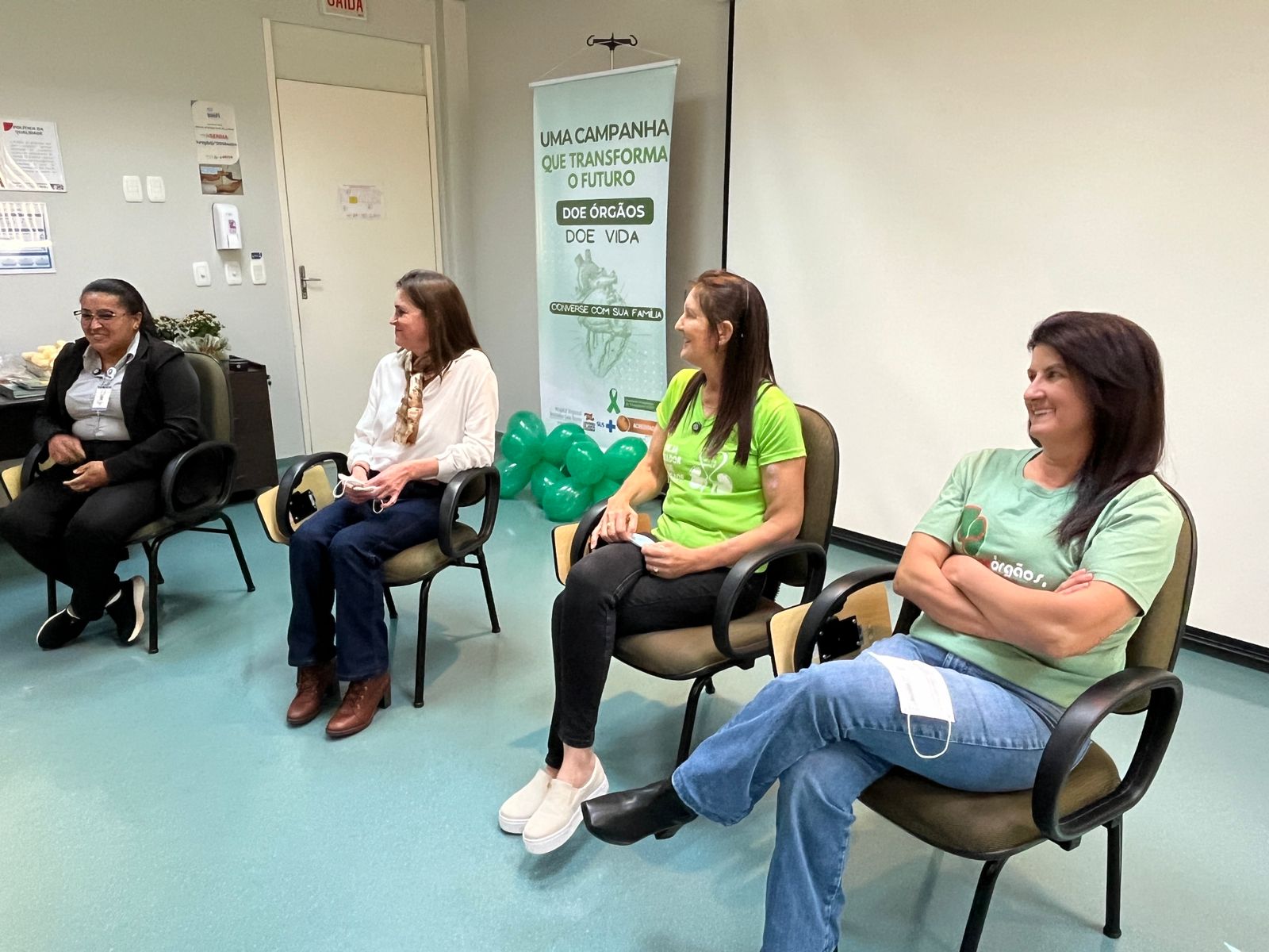 Participaram como convidadas da ação Salete Klein Borges, que passou duas vezes por transplante renal, sendo o último em julho de 2025; Ivanir Milani, transplantada renal em agosto de 2024; Sandra Loro, transplantada de pulmão em dezembro de 2024;, e a colaboradora do HRTGB-Santé, Meirilane Nascimento de Oliveira, transplantada de córnea há 24 anos.