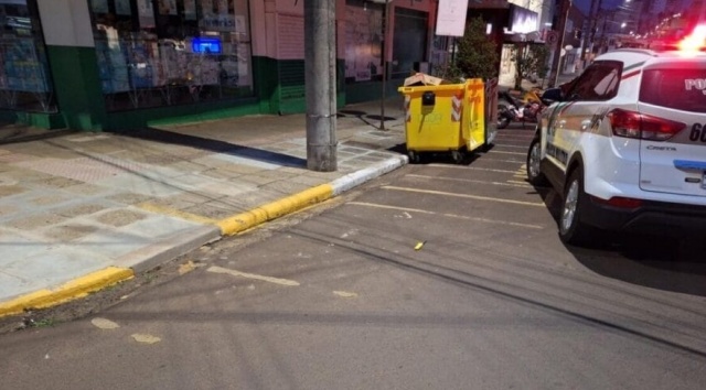 A vítima foi encontrada caída na calçada, cerca de 10 metros do autor, apresentando lesão no abdômen. O Corpo de Bombeiros realizou o atendimento pré-hospitalar e conduziu o homem ferido ao hospital.