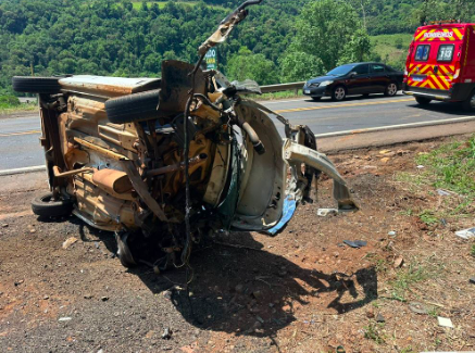 O carro capotou nas margens da pista depois da batida frontal com a carreta, dirigida por um homem de 37 anos, que não sofreu ferimentos.