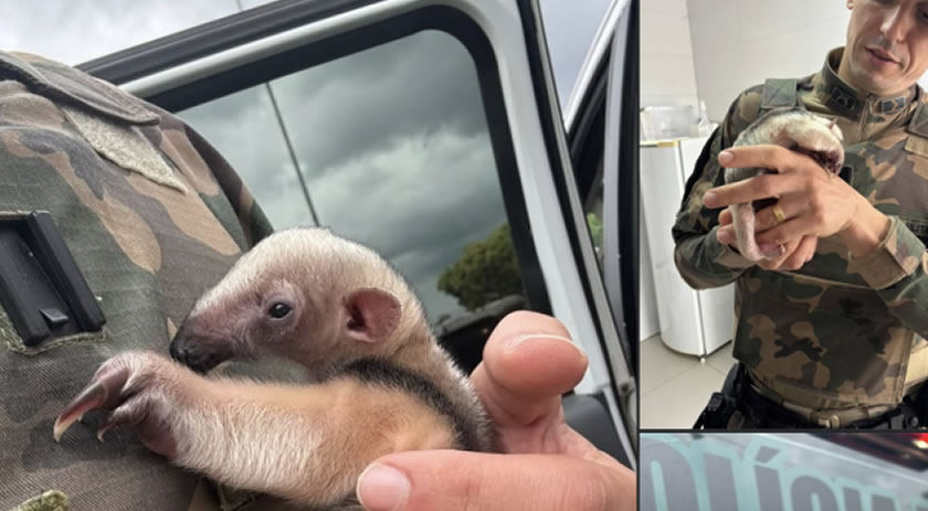 Filhote de Tamanduá-Mirim é resgatado pela Polícia Militar Ambiental após se perder da mãe