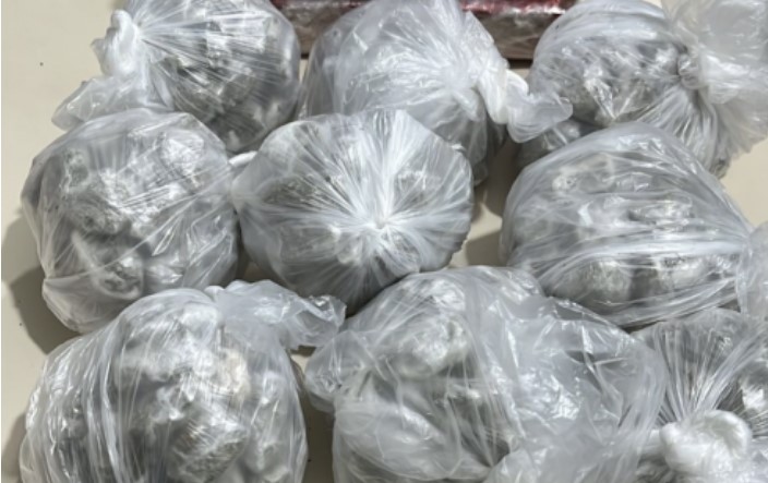 A droga estava dividida em tijolos prensados e também em porções já embaladas e prontas para a comercialização. O peso total da apreensão foi de aproximadamente 2.150 gramas (2,15 kg).