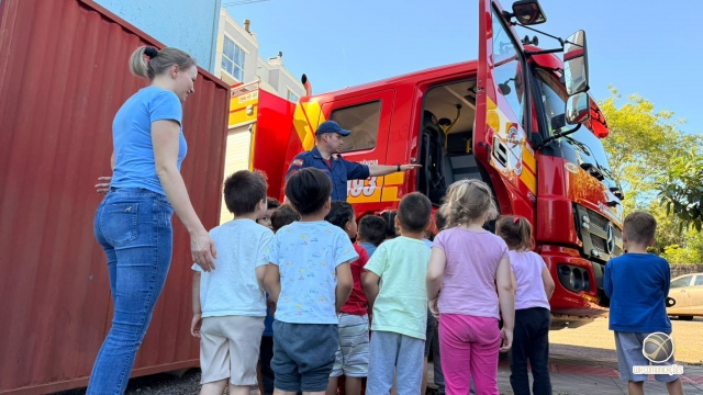 Militares do 12º Batalhão de Bombeiros Militar (BBM) de São Miguel do Oeste participaram, na tarde desta quarta-feira (17), de uma ação social e educativa no CEI Ciranda da Alegria, localizado na região central do município.