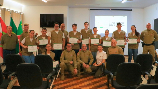 A formatura de mais de 400 jovens que participaram do Curso de Formação de Auxiliares Temporários de Serviço Administrativo (AT), realizado pela Polícia Militar de Santa Catarina (PMSC) em diversas regiões do Estado, aconteceu nesta terça-feira (20). Em São Miguel do Oeste, a solenidade ocorreu nas dependências do 11º Batalhão de Polícia Militar de Fronteira, e contou com a presença do comandante do 9º Comando Regional da Polícia Militar, coronel Jailson Aurélio Franzen, representando neste ato o governador do Estado de Santa Catarina, entre outras autoridades, familiares e convidados.