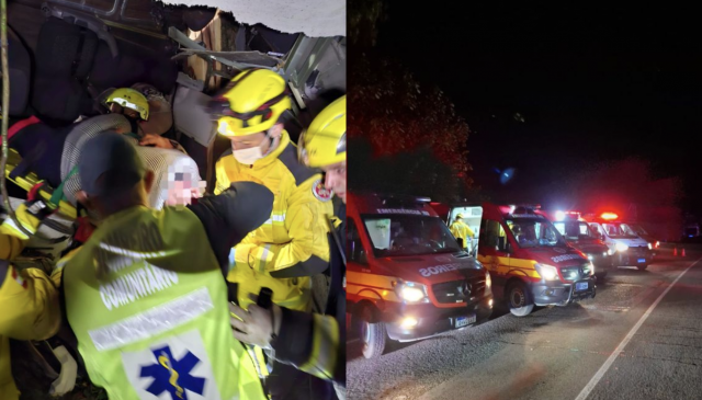 Segundo o 15º Batalhão de Bombeiros Militar, o ônibus transportava 24 passageiros e o motorista no momento do acidente. Com a queda e a colisão contra um objeto fixo, várias vítimas ficaram presas às ferragens, e três mortes foram confirmadas ainda no local.
