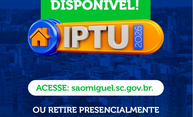 A Prefeitura de São Miguel do Oeste informa que o IPTU 2026 já está disponível para pagamento. A cota única e a primeira parcela vencem no dia 10 de março.