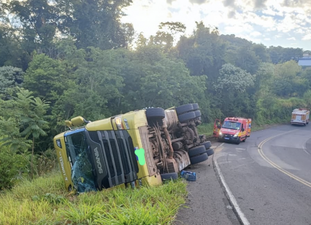 De acordo com os bombeiros, as viaturas foram acionadas para atender a ocorrência de saída de pista seguida de tombamento de um caminhão Scania. Ao chegarem ao local, os socorristas encontraram o motorista, um homem de 33 anos, já fora do veículo, sentado às margens da rodovia, consciente e orientado.