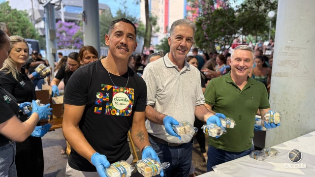 Distribuição de mais de 500 kg de bolo marca encerramento do aniversário de 72 anos