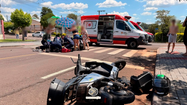 Equipes do Serviço de Atendimento Móvel de Urgência (SAMU) e do Corpo de Bombeiros atenderam por volta das 12h10 desta quarta-feira (4) um grave acidente de trânsito no cruzamento das ruas Cristóvão Colombo e Lauro Graeff, no bairro Estrela, em São Miguel do Oeste.