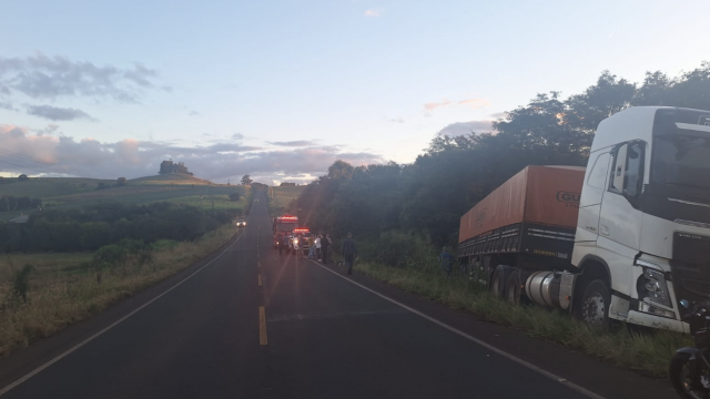 De acordo com a Polícia Militar Rodoviária, o sinistro ocorreu por volta das 17h30min, no km 73,450 da rodovia, e envolveu um caminhão trator Volvo/FH 460, com placas de Descanso, e uma motocicleta Honda/CG 125, emplacada em São Miguel do Oeste.