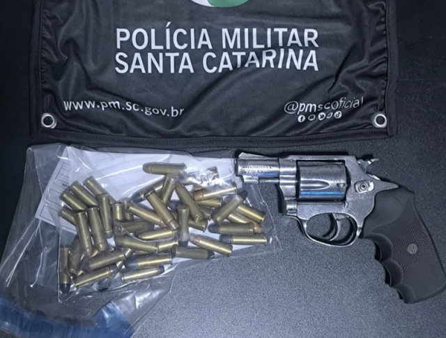 Durante a revista no veículo, os policiais localizaram um revólver calibre .38 municiado, além de 43 munições do mesmo calibre dentro de uma mochila.