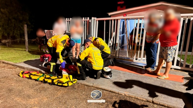 O Corpo de Bombeiros foi acionado por volta das 22h10 e, ao chegar no local, encontrou o condutor de uma Honda/CG 160 após colidir contra o portão de uma residência.