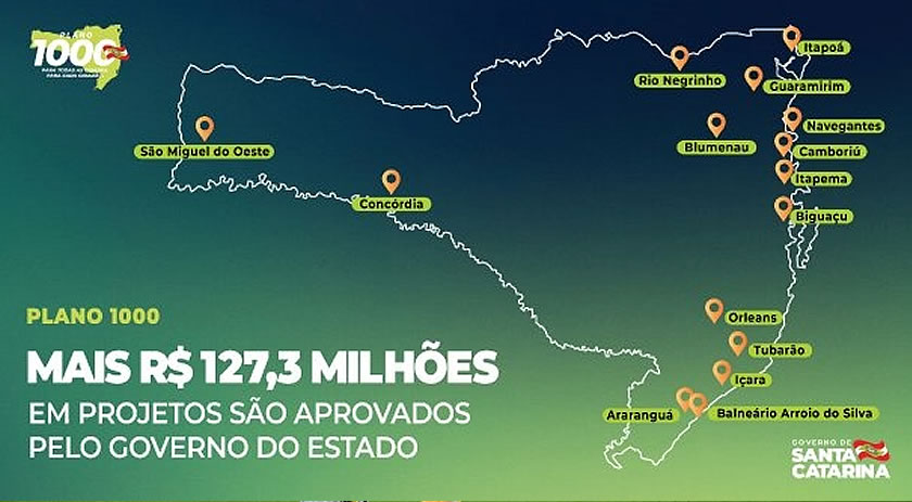 Santa Catarina já conheceu mais 15 cidades que tiveram suas propostas aprovadas para o maior projeto municipalista da história. Trata-se de uma nova fase do Plano 1000 que prevê a distribuição de mais de R$ 127 milhões para tirar obras estruturantes do papel.